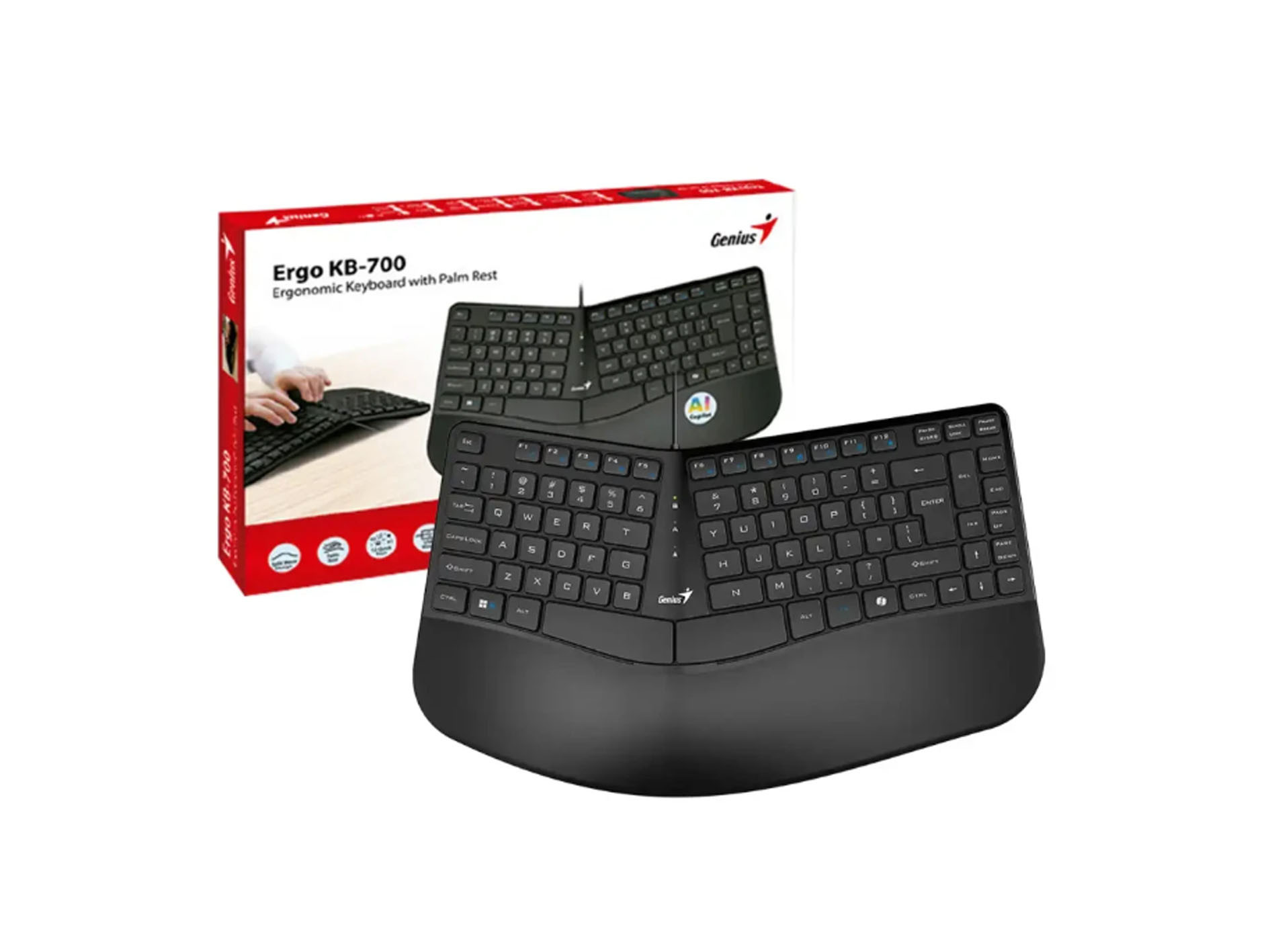 TECLADO GENIUS ERGO KB-700 AI COPILOT WAVE KEYS USB NEGRO